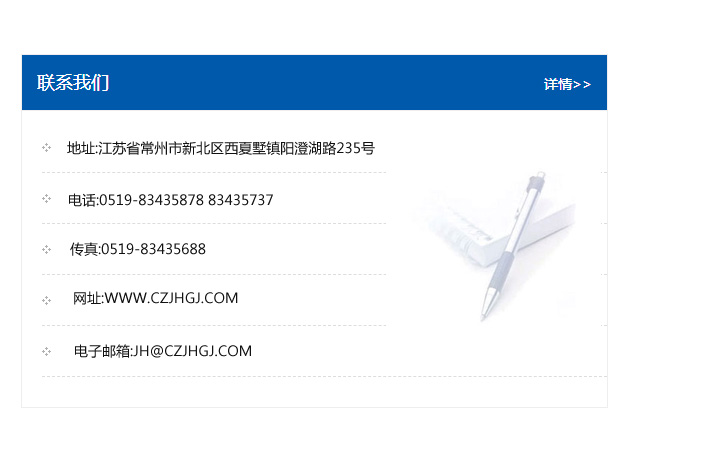 地址:常州市新北區(qū)友邦商務(wù)大廈1幢16、17層  電話:0519-85101652  傳真:0519-85112595  郵編:213022  網(wǎng)址:www_cz-jiayue_cn.jiankangfanhe88.com  郵箱:xiajifengaa@163.com